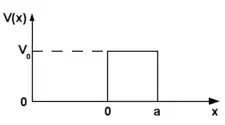 (Una forma más elegante de expresar el potencial es en función de la función escalón de Heaviside, definida por . Entonces, el potencial se expresa como ). Con esta elección del origen de coordenadas, la barrera se encuentra entre y . Sin embargo, es posible cualquier otra elección del origen de coordenadas sin que cambien los resultados.