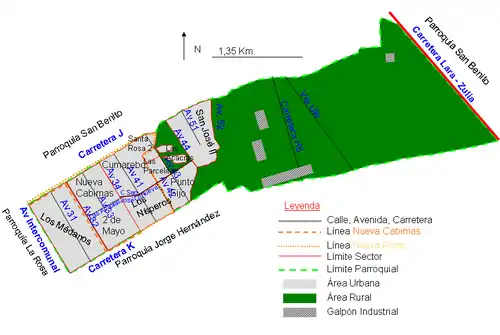La línea Nueva Rosa de la Nueva Cabimas, sigue por la carretera de la 32 hasta la 42, sigue la 42 hasta la J y regresa por la 41 hasta la K.