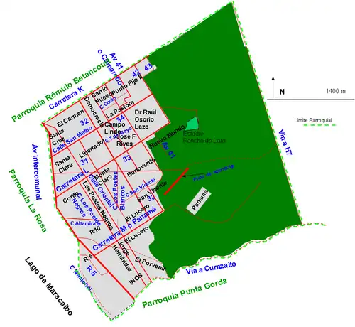 Se encuentra entre los sectores Gasplant y La Rosa al noroeste (Av Intercomunal), Santa Cruz al norte (calle San Mateo), Libertador al este (calle Oriental) y Corito y Los Postes Negros al sur (carretera L).