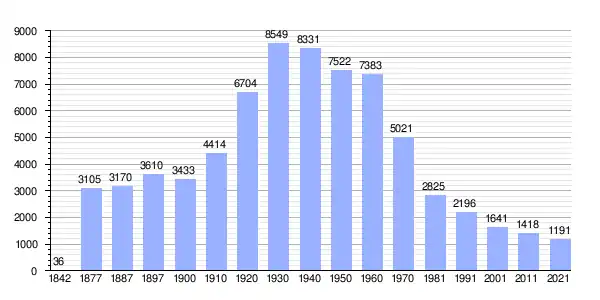 | 1900 | 1910 | 1920 | 1930 | 1940 | 1950 | 1960 | 1970 | 1981 | 1991 | 2001 | 2010 | 2014 | 2015 | 2017 | 2018 |