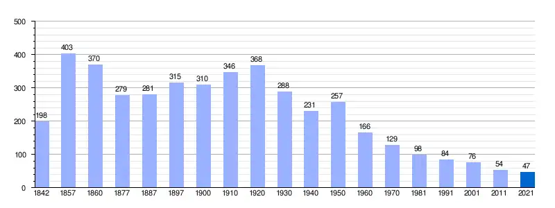| Gráfica de evolución demográfica de Barruelo del Valle[5] entre 1842 y 2021 |
