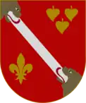 Escudo de Bartolomé Hurtado García, dentro del monumento del calvario, versión con los dos apellidos, "habitualmente se utilizaba el del apellido Hurtado al comienzo de sus obras, pero después se empezaría a utilizar el añadido de García en su escudo".