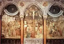 Durante el siglo XX, las capillas laterales, cuyos frescos originales estaban muy deterioradas por el abandono y el paso de los siglos, fueron pintadas al fresco nuevamente.