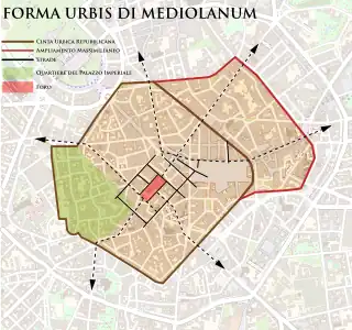 Con san Ambrosio comenzó un programa de construcción de basílicas dedicadas a las diversas categorías de santos: una basílica para los profetas (la basilica prophetarum, más tarde rebautizada como basílica de San Dionigi), una para los apóstoles (la basilica apostolorum, que luego tomó el nombre de la basílica de San Nazaro en Brolo), una para los mártires (la basilica martyrum, que luego se convirtió en la basílica de San Ambrosio), uno para las vírgenes (la basilica virginum, más tarde rebautizada como basílica de San Simpliciano).