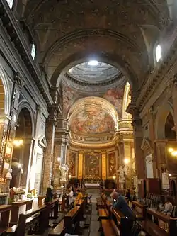 La iglesia sigue el tipo de planta de cruz latina, con transepto y un ábside profundo. El aula tiene una sola nave a lo largo de la cual hay tres capillas a cada lado. El interior, ricamente decorado, tiene varias obras de artistas de los siglos XVII y XVIII, como Francesco Cozza, Francesco Queirolo, Giovanni Battista Maini, Giuseppe Bottani, Paolo Posi, Pietro Bracci.