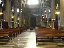 A partir de un documento de 1642 se constata que tales obras, en especial la apertura de tres ventanas semicirculares, la refacción de las columnas internas y de los capiteles, fueron confiadas al arquitecto Daniele Casella y al escultor Giovanni Battista Bianco. En tal circunstancia se reestructuraron totalmente las capillas y los altares laterales, enriquecidos con pinturas y esculturas (las bóvedas serán pintadas con frescos en el siglo XVIII).