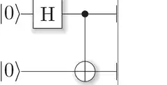 Hay varios posibles caminos para crear un estado entrelazado de Bell a través de circuitos cuánticos. Una de las formas más simples se consigue teniendo de entrada un estado de una de las bases computacionales de dos qubits () y pasar a dicho estado por un circuito cuántico compuesto por una puerta de Hadamard (u operador) y una puerta CNOT (u operador), representando en la imagen la puerta de Hadamard con la y la CNOT con .