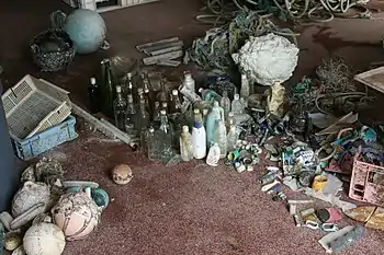 Otras fuentes de desechos marinos son la pesquería y el transporte de mercancías por los mares.[18] Se estima que los barcos con contenedores pierden cerca de 10 000 contenedores al año (usualmente durante las tormentas).[19]