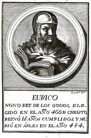 ![]() Eurico, retratado de forma imaginaria en un grabado español de 1782. | ||||