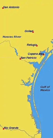 | Lugar | Fuerte de Lipantitlán (hoy San Patricio, Texas, EE. UU.) | |||