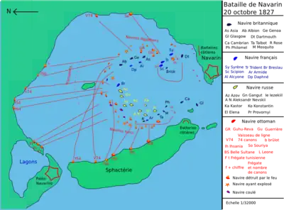 ![]() Batalla de Navarino, pintura al óleo de Garneray. | ||||