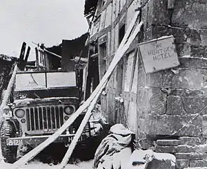 ![]() Jeep del ejército estadounidense Willys MB junto al Hotel Hürtgen. | ||||