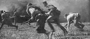 ![]() Soldados alemanes disparando contra tropas soviéticas a orillas del Dniéper. | ||||