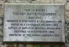 - Scottish Covenanter Memorials Association. «Covenanters' Prison, Greyfriars Churchyard». Covenanter Memorials Association. Archivado desde el original el 23 de octubre de 2015. Consultado el 14 de agosto de 2011.