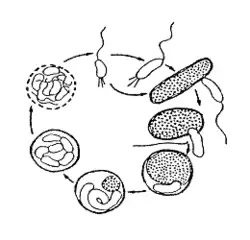 El material citoplásmico de la bacteria parasitada se usa como nutrientes. El bdelloblasto (o bdelloplasto) se alarga y se divide por fisión múltiple siendo sus células hijas vibroides con flagelo polar. Después de una tres horas de haber invadido la presa, rompen la membrana plasmática y salen al exterior, comenzando de nuevo el ciclo.