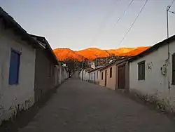 Es la única localidad del altiplano andino fundado por los españoles (hacia 1625). Fue elegido por su buen clima y por estar en la ruta de Potosí, vía Azapa. Conserva su traza colonial de ordenadas calles, algunas empedradas y con un canal de agua al medio, y viviendas de adobe adosada unas a otras. Se encuentra rodeada de áridos cerros, campos de pastoreo y de muchos eucaliptos. Al centro de la localidad, se ubica una plaza escalonada de tres niveles.