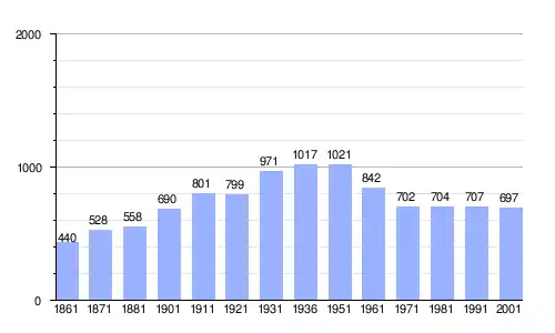 | Gráfica de evolución demográfica de Belforte all'Isauro entre 1861 y 2001 |
