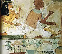 Al rey y su familia les acompañaban egipcios que tenían enterrados en la otra orilla (orilla de los muertos) a sus ancestros para honrarlos y presentarles ofrendas. Allí tenían lugar celebraciones y banquetes funerarios y se depositaban óstracas con oraciones y peticiones al dios para que atendiera sus súplicas.