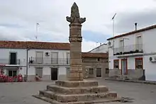 - Iglesia de Santiago. Iglesia parroquial católica bajo la advocación de Santiago Apóstol, en el arciprestazgo de Navalmoral de la Mata de la diócesis de Plasencia.[18]