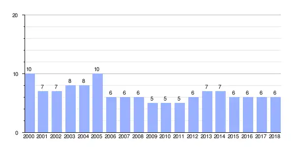 | Gráfica de evolución demográfica de Benade entre 2000 y 2018 |