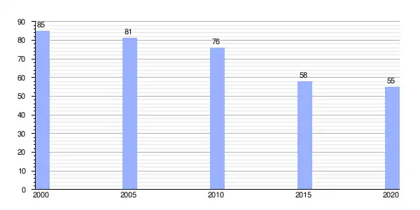 | Gráfica de evolución demográfica de Bendollo (aldea) entre 2000 y 2020 |
