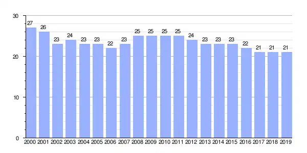 | Gráfica de evolución demográfica de Benza (aldea) entre 2000 y 2019 |