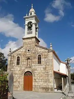 Delante de la iglesia existe un crucero obra de un santeiro (cantero de santos).