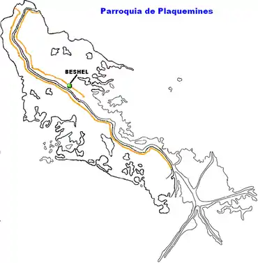Localización de Beshel en el mapa de la Parroquia de Plaquemines.