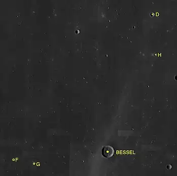 Por convención estos elementos son identificados en los mapas lunares poniendo la letra en el lado del punto medio del cráter que está más cerca de Bessel.