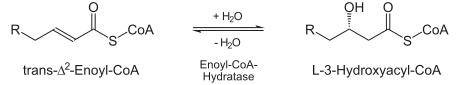 Trans-Δ2-enoil-CoA + H2O → L-β-hidroxiacil-CoA