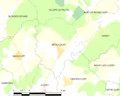 Betaucourt es una población y comuna francesa, situada en la región de Franco Condado, departamento de Alto Saona, en el distrito de Vesoul y cantón de Jussey.
