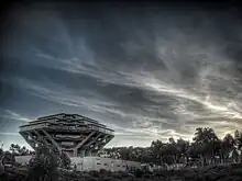 La biblioteca Geisel distintiva de UCSD, que lleva el nombre de Theodor Seuss Geisel ("Dr. Seuss") y aparece en el logotipo de UCSD