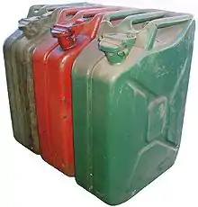 Hasta el desarrollo del triángulo de fácil manejo depósito de cartucho de combustible de chapa estampada con cantidades de 2,5 a 20 litros en el uso civil y militar eran comunes.
