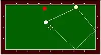 - Su bola primero toca una de las otras bolas (la otra blanca o la roja) y su bola en seguida hace tres contactos con una o más bandas (comúnmente 3 diferentes bandas) antes de hacer contacto con la última bola.