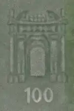 Todos los billetes muestran puentes y arcos en un estilo arquitectónico europeo diferente; y en el caso del billete de cien euros, ese estilo corresponde a la era barroca y rococó (Siglos XVII y XVIII). Aunque los diseños originales de Robert Kalina pretendían mostrar monumentos reales, los motivos empleados muestran únicamente monumentos ficticios de cada era arquitectónica, con el fin de evitar polémicas sobre cuáles deberían ser incluidos.