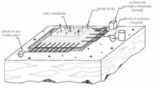 El landfarming es un método de remediación a campo de suelos que reduce la concentración de hidrocarburos derivados del petróleo, tanto por evaporación como por biodegradación. Implica la disposición del suelo contaminado en una fina capa sobre la superficie, favoreciendo la actividad microbiana a través de oxigenación y/o del agregado de nutrientes, minerales o incrementando su humedad.[39] Generalmente se utiliza algún tipo de aislante debajo para evitar la migración del contaminante al suelo sobre el cual se dispone el landfarming.