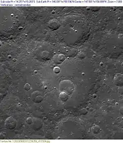 ![]() Mosaico de la imagen oblicua desde el Lunar Orbiter 5 (lado oeste) | ||