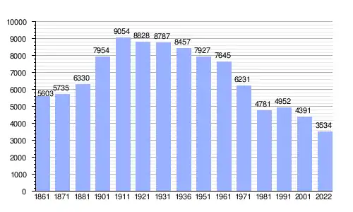 | Gráfica de evolución demográfica de Bisaccia entre 1861 y 2022 |