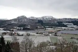 Esta asentada en una estrecha cuenca lacustre, conformada por los lagos glaciares Bjørheimsvatnet, Østerhusvatnet, Høletjørna y Tysdalsvatnet. Las montañas Holtaheia y Reinanuten delimitan el contorno del valle.
