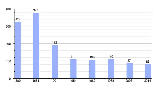 Los datos demográficos contemplados en este gráfico de la comuna de Blaise[5] se han cogido de 1800 a 1968 de la página francesa EHESS/Cassini. Los demás datos se han cogido de la página del INSEE.[6]