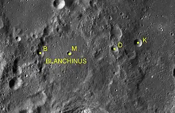Por convención estos elementos son identificados en los mapas lunares poniendo la letra en el lado del punto medio del cráter que está más cerca de Blanchinus.
