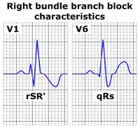 Los criterios para el diagnósitico de un bloqueo de rama derecha en un electrocardiograma son:[6]