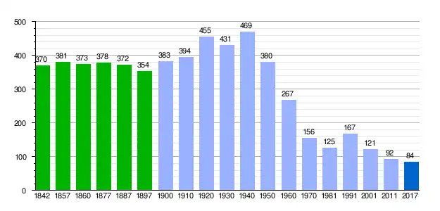 Población de derecho (1842-1897, excepto 1857 y 1860 que es población de hecho) según los censos de población del siglo XIX.[6] Población de derecho (1900-1991) o población residente empadronada (2001 y 2011) según los censos de población del INE.[6] Población según el padrón municipal de 2017 del INE. |
