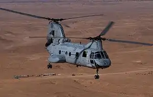 El Boeing Vertol CH-46 Sea Knight es un helicóptero de transporte de carga media birrotor de origen estadounidense. Fue desarrollado por la compañía Vertol Aircraft, que fue comprada por Boeing y pasó a llamarse Boeing Vertol, y fue fabricado desde 1962 a 1971. Principalmente utilizado por el Cuerpo de Marines y la Armada de los Estados Unidos para el transporte de tropas de asalto en combate como función primaria, y para movimiento de suministros y equipamiento como función secundaria, con capacidad operativa todo tiempo y día-noche. Otras funciones en las que se emplea esta aeronave son apoyo de combate, búsqueda y rescate (SAR), apoyo para puntos avanzados de reabastecimiento de combustible y armamento, evacuación de heridos (CASEVAC) y recuperación táctica de aeronaves y personal (TRAP).