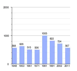 | Gráfica de evolución demográfica de Bogaraš entre 1948 y 2011 |