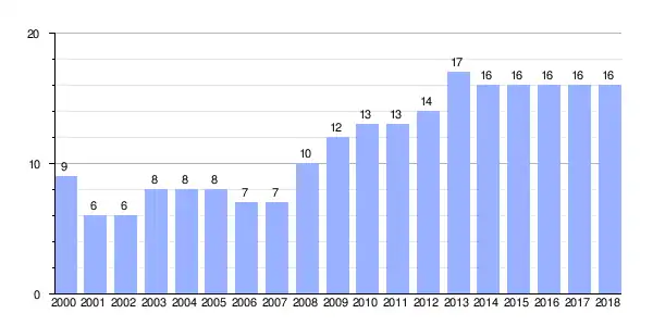 | Gráfica de evolución demográfica de Boimil entre 2000 y 2018 |