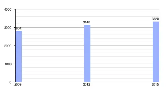 | Gráfica de evolución demográfica de Bois Blanc entre 2009 y 2015 |