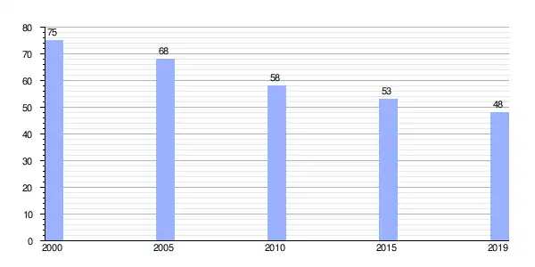 | Gráfica de evolución demográfica de Bolaño (parroquia) entre 2000 y 2019 |