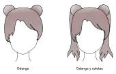 Los bollos dobles o de coletas a menudo se llaman odango (お団子) , [3] que también es un tipo de bola de masa japonesa (generalmente llamada dango ; la o- es honorífica).