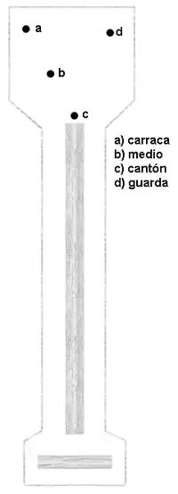 Están hechos de madera noble tallada. Existen 4 bolos en función de la posición(guarda, cantón, carraca y medio), pero físicamente solo se observan 2 tipos: